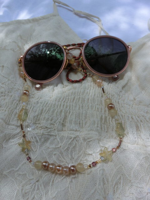 Perlenkette mit Retrocharm aus böhmischen Glasperlen, in Naturtönen von hellbeige über roségold, bis hin zu kleinen braunen Akzenten.